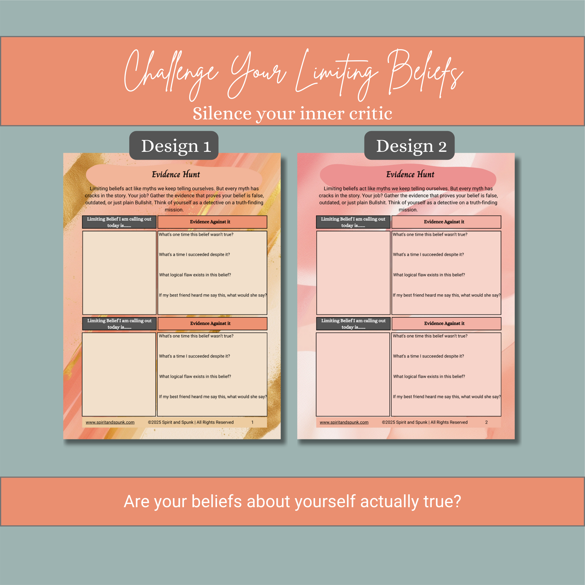 Challenge a limiting belief with logic, clarity, and courage. The Evidence Hunt worksheet helps you dismantle self-doubt and the inner critic by collecting actual evidence—not fear-based assumptions.