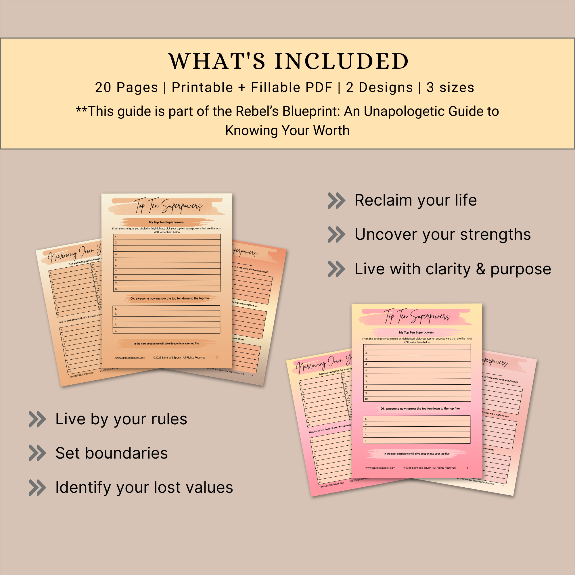 - 20 Pages of Zero-BS Content: Rediscover your strengths, start living by your core values
